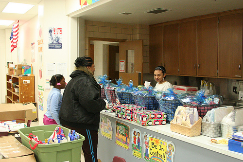 This and other efforts raised an impressive sum (including the money to cover other supplies, the amount came to $628). We were able to raffle off enough holiday baskets to make a lot of parents very happy indeed.