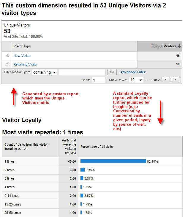 Google Analytics blows people’s minds by having both a dimension and a metric to describe one thing: visitor frequency.