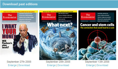 And then there are the magazines using podcasts in a big way. My latest print Economist is a weekly treat (it’s sad, I know), but time being scarce, I appreciate their new service, Talking Issues. It allows print subscribers to download the latest issues as dozens of well-categorized and labeled podcasts. You get every word of their print edition. Now I get to “read” The Economist the way I would a spoken word book during my long commute into work.