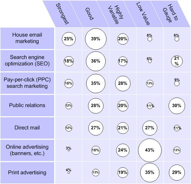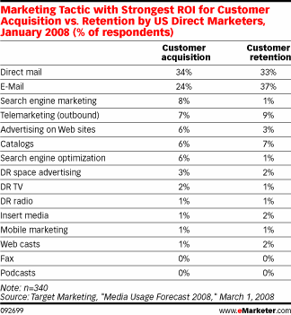 It shows how a majority of marketers favor direct mail for lead generation versus search marketing. Scott Brinker was rightly puzzled by this, in a recent post. I agree with Scott that a chief reason for this strong preference for direct mail over search engine marketing (34% versus 8%), when it comes to customer acquisition, is the difficulty many marketers face in getting search prospects to convert.